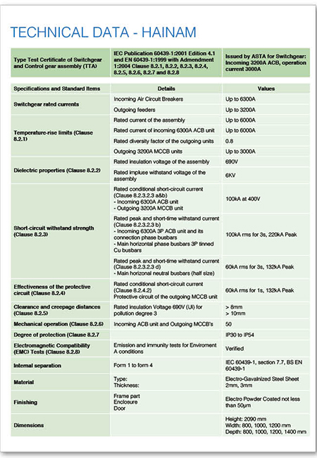 Technical data Hainam